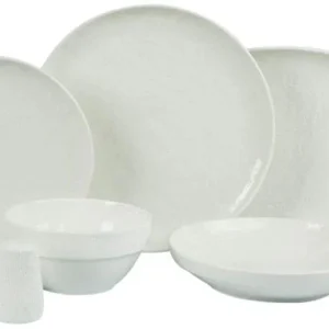 - Inhoud set: 6 dinerborden, 6 diepe borden, 6 dessertborden, 6 kommen, 1 serveerschaal, 1 peper- en 1 zoutvaatje