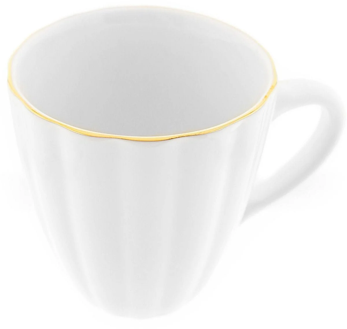 Almina Daisy – Koffiekopjes met Gouden Randje – Set van 2 – Wit – 330ml – Porselein – Koffiekopjes