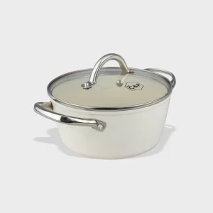 - Bijzonderheden: Deksel met stoomgaatje, hittebestendige handgrepen