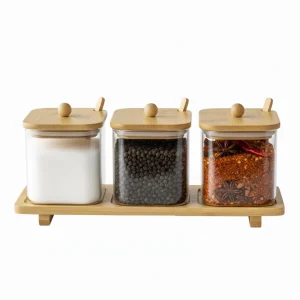 - Afmetingen: Potjes ca. 8 cm hoog; houder passend voor compact aanrechtgebruik
