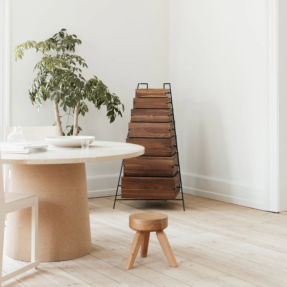 The AML stool by Frama is a real multitasker. Use it as a side table, stool, bedside table and more. This petite furniture object takes its cues from a curation of vintage standards and is beautiful in every interior. The stool owes its name to Andreas Martin-Löf, who made the design in 2018.