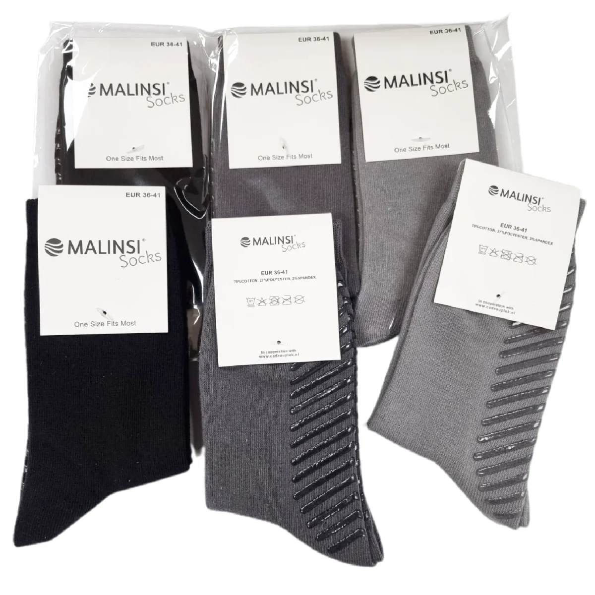 Bij elke bestelling ontvang je 3 paar mooie Malinsi antislip sokken zoals op de afbeeldingen te zien zijn.