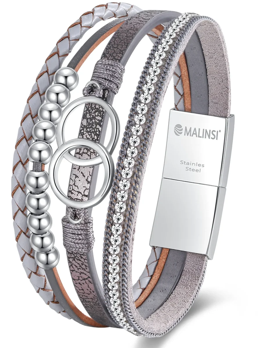 Deze Malinsi armband met 4 snoeren heeft een uniek en veelzijdig design! Het robuuste leer voegt een vleugje authenticiteit toe, terwijl de vier verschillende snoeren zorgen voor een opvallend en dynamisch ontwerp. Elk snoer heeft zijn eigen karakter, variërend van glad en glanzend tot gevlochten en gedraaid, waardoor deze armband een echte eyecatcher is. De armband is gemaakt van de beste materialen om ervoor te zorgen dat hij lang mooi zal blijven, en is voorzien van een stevige sluiting voor een veilige en comfortabele pasvorm. De Malinsi armband wordt geleverd in een speciaal fluwelen zakje wat het uitpakken een extra leuke ervaring maakt. Kies jou of haar favoriete Malinsi armband en ervaar dit veelzijdige design!