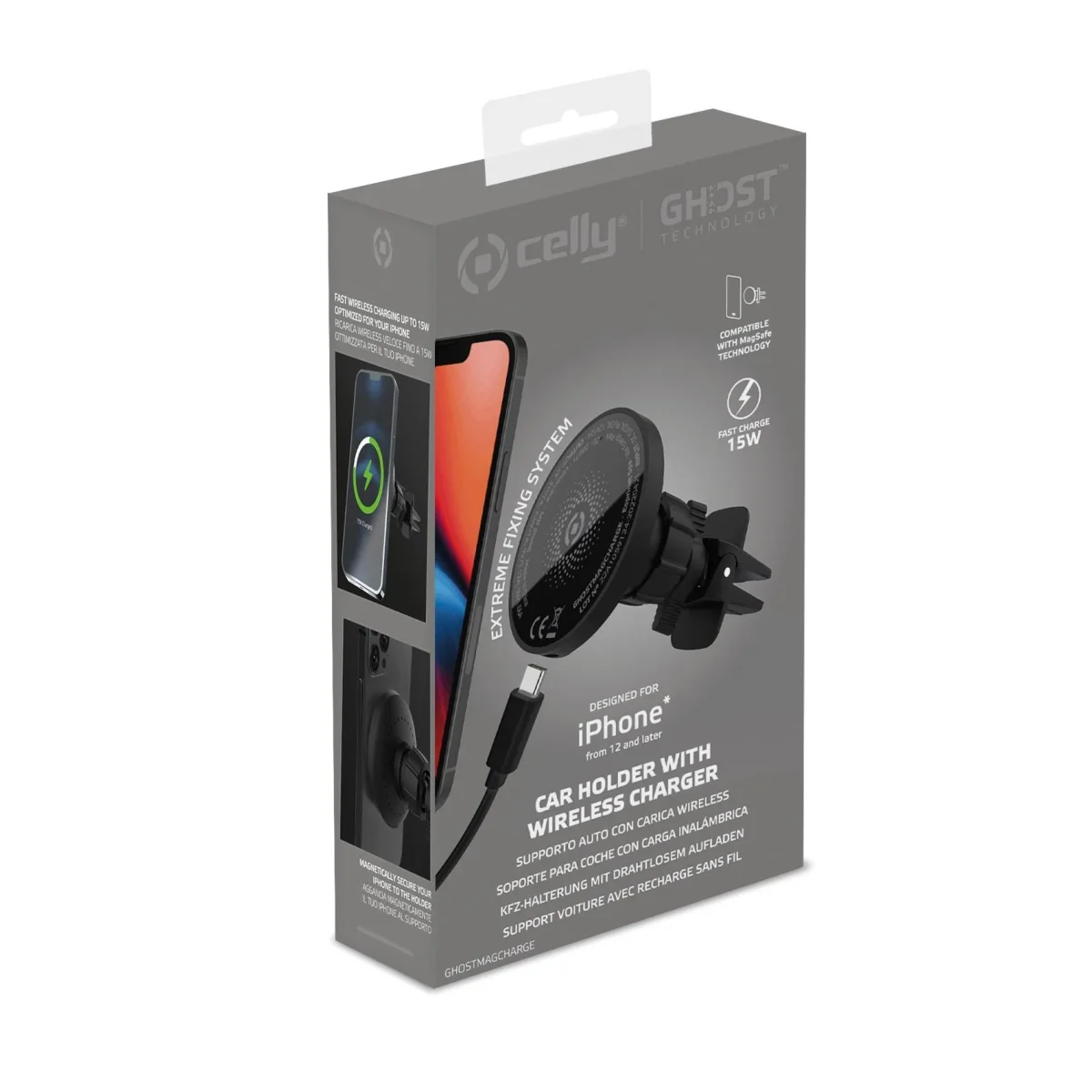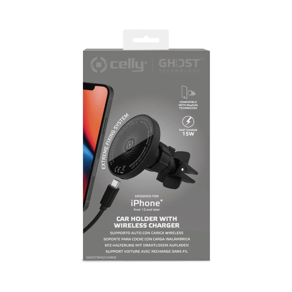 Inbegrepen in de verpakking is een handige USB-A naar USB-C kabel voor de voeding van de houder. Kortom, met de Celly GhostMagCharge Autohouder geniet je van veilig, snel en draadloos opladen tijdens het rijden!