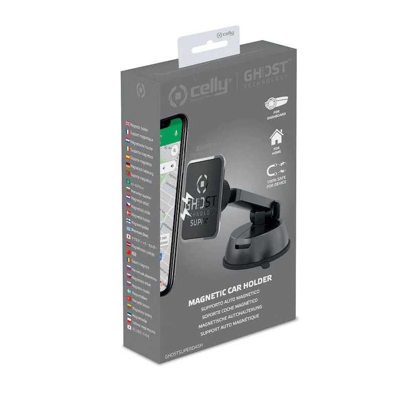 Ontdek de Celly GhostSuperDash Autohouder met 2 Magneetplaten – jouw veelzijdige metgezel voor een veilig en comfortabel gebruik van je smartphone in de camper of auto!