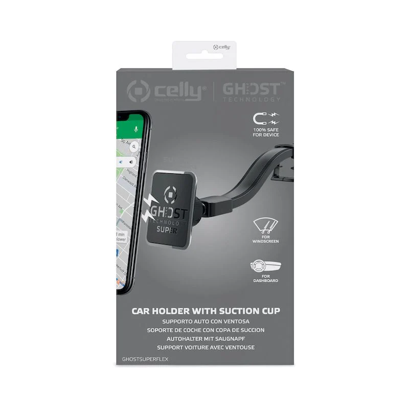 Kies voor flexibiliteit, stabiliteit en gemak onderweg met de Celly GhostSuperFlex Autohouder – de perfecte oplossing voor veiligheid en toegankelijkheid van je smartphone tijdens je reizen.