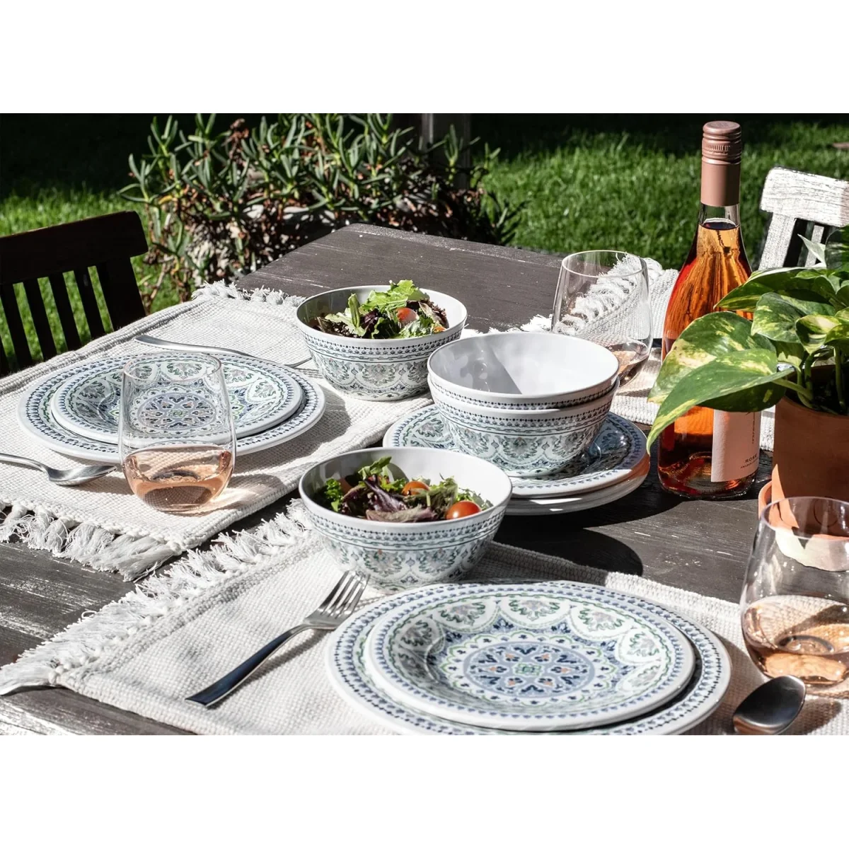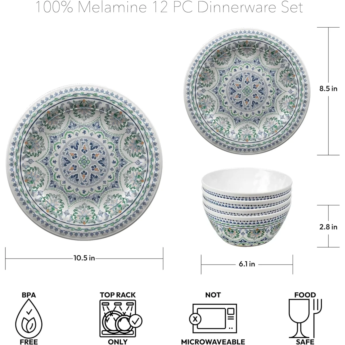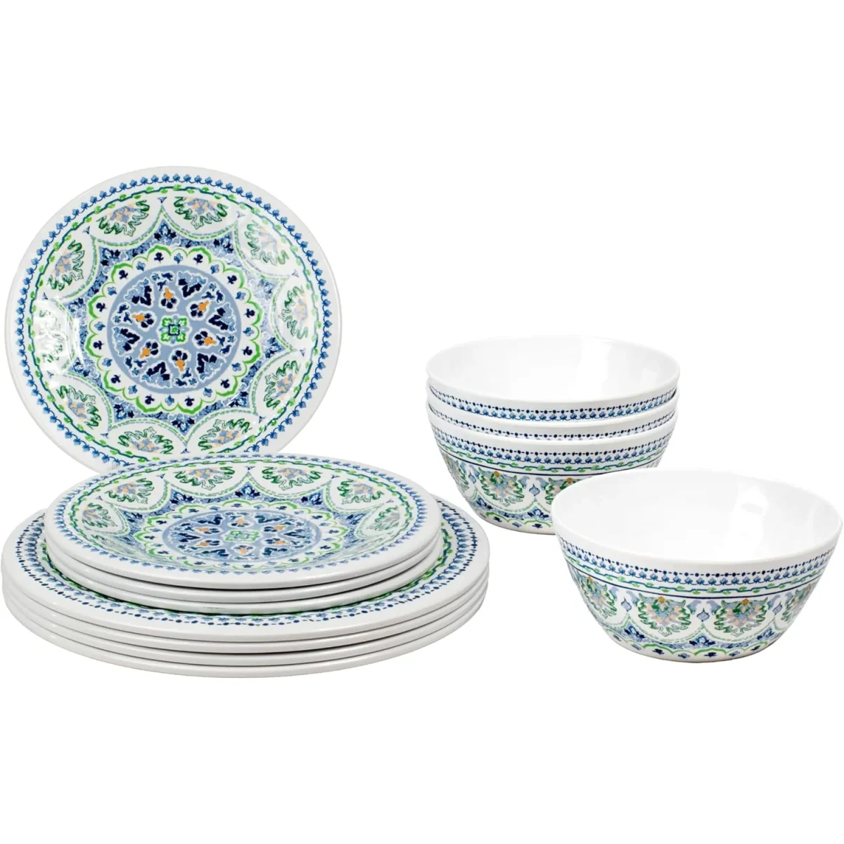 Dit duurzame 12-delige servies is perfect voor gebruik in de camper, caravan, op de camping of aan het zwembad. Gemaakt van 100% hoogwaardig melamine (zonder vulstoffen) is het breukbestendig, lichtgewicht en nauwelijks te onderscheiden van echt porselein.