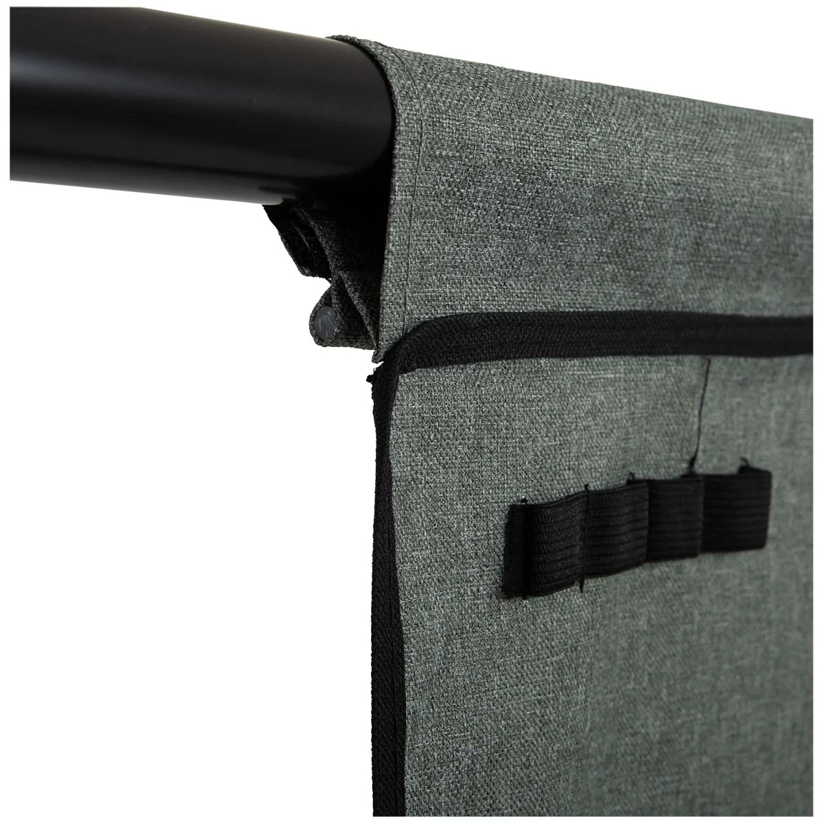 De organizer beschikt over 1 ruim hoofdvak, 2 middelgrote vakken met rits, 3 kleine vakjes en een extra gaasvak aan de voorzijde. Bovenaan vind je elastieken voor bijvoorbeeld tijdschriften of kranten, en er is zelfs een pennenhouder geïntegreerd – alles binnen handbereik!