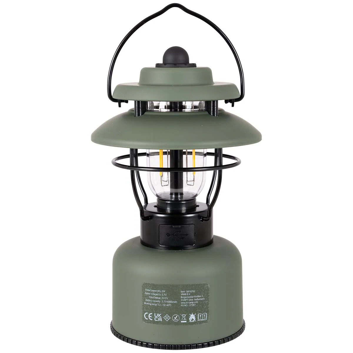 De ingebouwde Li-ion accu is eenvoudig op te laden met de meegeleverde USB-kabel. Dankzij het hengsel met ophanghaak kun je de lantaarn zowel neerzetten op een tafel of kastje als ophangen voor een sfeervol effect.
