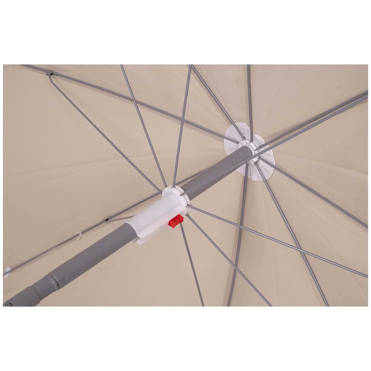 De stalen steel met een diameter van 25 mm past perfect in een parasolvoet, een tafelopening of gewoon in het zand, en is daarnaast compact op te bergen en mee te nemen.