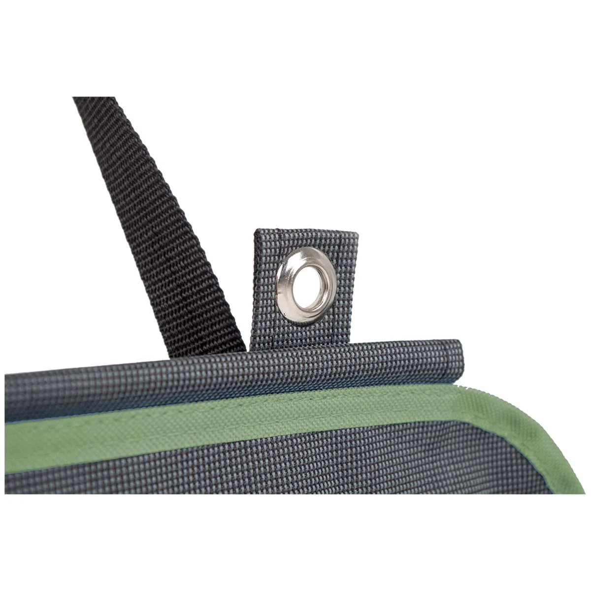 Met straps, ogen en lussen onderaan blijft de organizer stevig op z’n plek – zelfs tijdens het rijden of op een winderige kampeerplek.