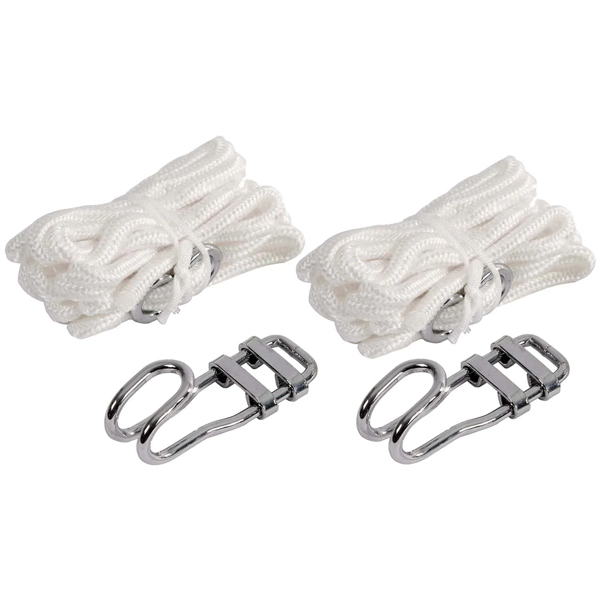 De set bestaat uit 2 stevige stalen haken en 2 robuuste touwen van elk 3,8 meter. Hiermee maak je jouw hangmat snel, veilig en eenvoudig vast aan vrijwel elke geschikte plek. Klaar om te ontspannen in een handomdraai!