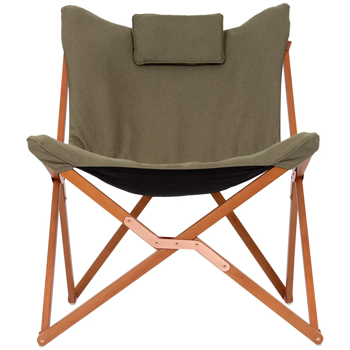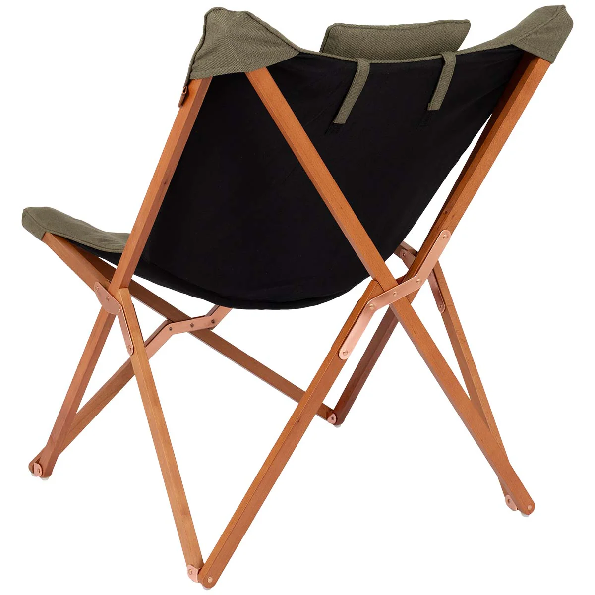 Het stijlvolle houten frame in lichte kleur geeft de stoel een warme en natuurlijke uitstraling die perfect past bij een gezellige kampeeromgeving. De zitting is gemaakt van Oxford stof, een hoogwaardige en stevige stof met een zachte touch en robuuste uitstraling.