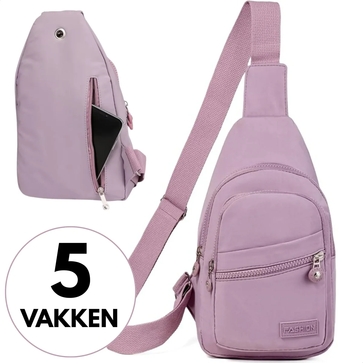 Ruim en slim ingedeeld: Meerdere vakken met soepele ritsen bieden plek aan je telefoon, paspoort, sleutels, portemonnee en andere dagelijkse essentials.