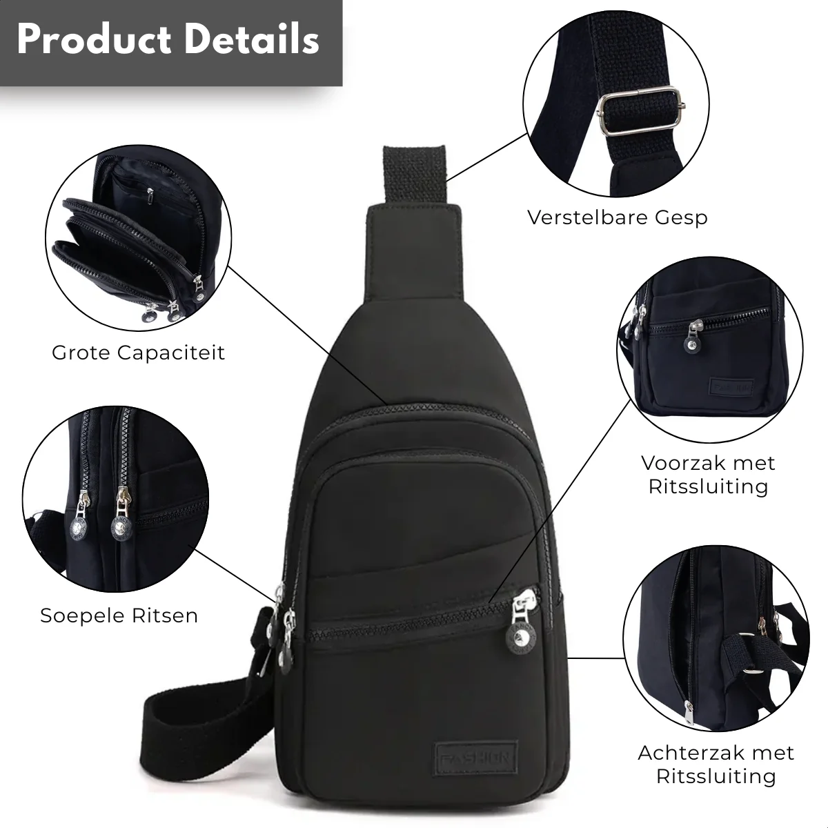 Multifunctioneel design: Draag ‘m als sling bag, borsttas of schoudertas. Ideaal voor dagelijks gebruik, reizen, hiken of een dagje shoppen.