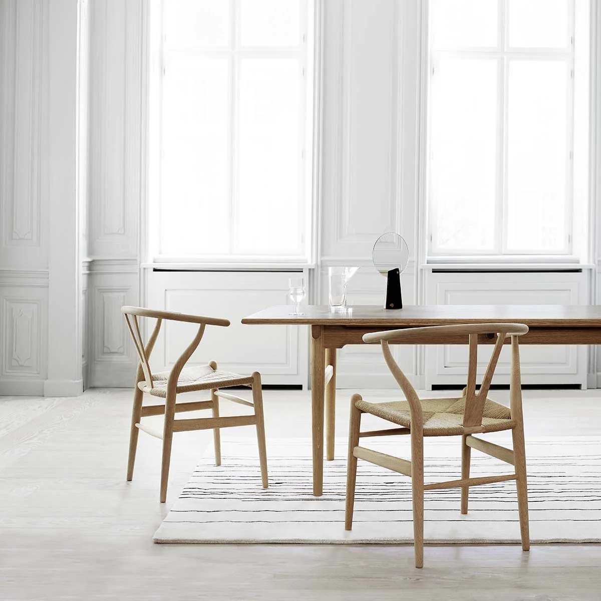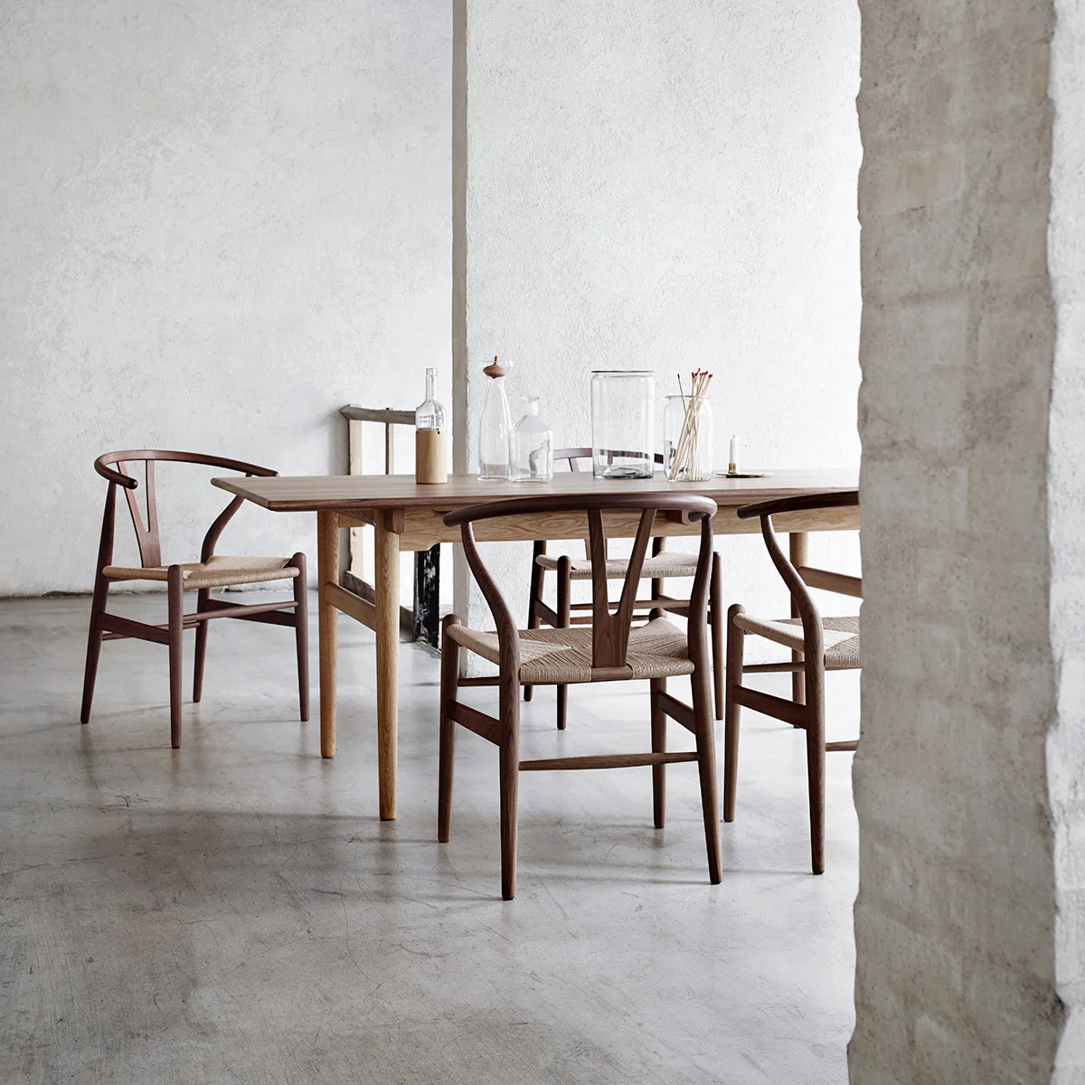The Carl Hansen CH24 Wishbone Chair is a revered icon of original Danish design, with its roots dating back to 1949 when it was brilliantly crafted by Hans J. Wegner. Since then, Carl Hansen & Son has continuously produced this masterpiece. Meticulously crafted by skilled artisans, each chair undergoes over 100 meticulous production steps, including the intricate hand weaving of the papercord seat. The characteristic Y-shaped back was created to give stability and ensure comfortable support. Over time, the wishbone chair has gained recognition as the ideal chair, capturing the essence of modern Danish design.