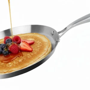 De Cheffinger Crêpe- en Pannenkoekenpan – 24 cm is dé must-have pan voor liefhebbers van perfect gebakken crêpes, pannenkoeken en zelfs pizza’s. Dankzij de hoogwaardige RVS-constructie met honingraatstructuur biedt deze pan een optimale warmteverdeling én een krasbestendig oppervlak. Geschikt voor alle warmtebronnen, inclusief inductie, en ontworpen voor een perfecte balans tussen functionaliteit en duurzaamheid.