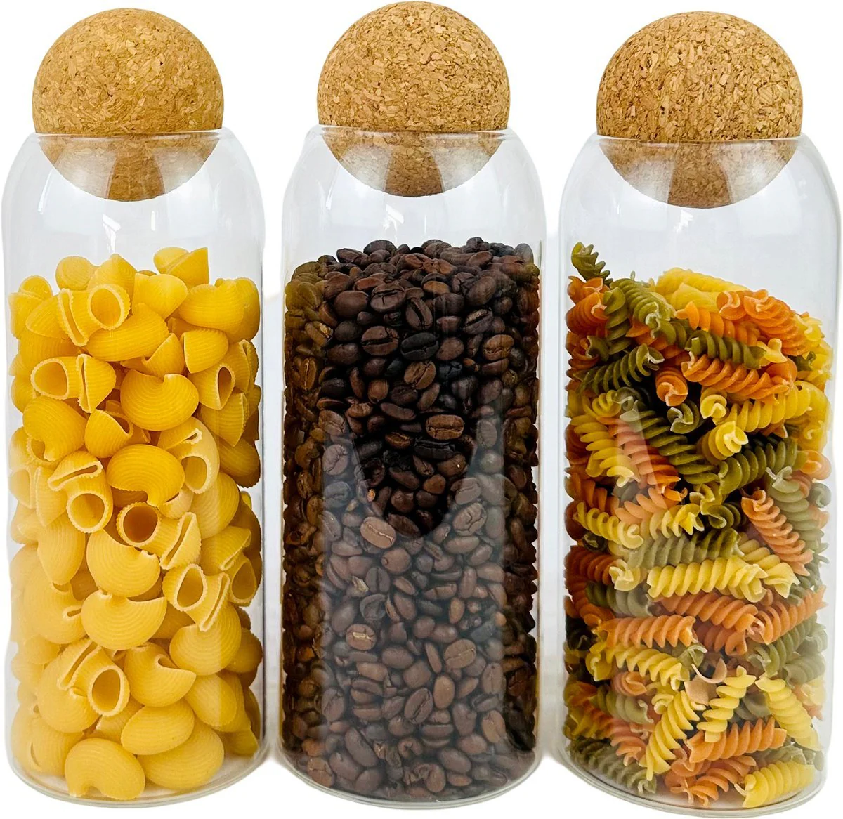 Houd je keuken georganiseerd en je voedsel langer vers met deze 3-delige set glazen voorraadpotten! De ruime potten van 1150 ml zijn perfect geschikt voor het bewaren van koffie, muesli, snoep en meer. Dankzij de natuurlijke bamboe deksel met aromadichte afsluiting blijven smaak en versheid optimaal behouden, terwijl het stijlvolle ontwerp een echte blikvanger is in jouw keuken.