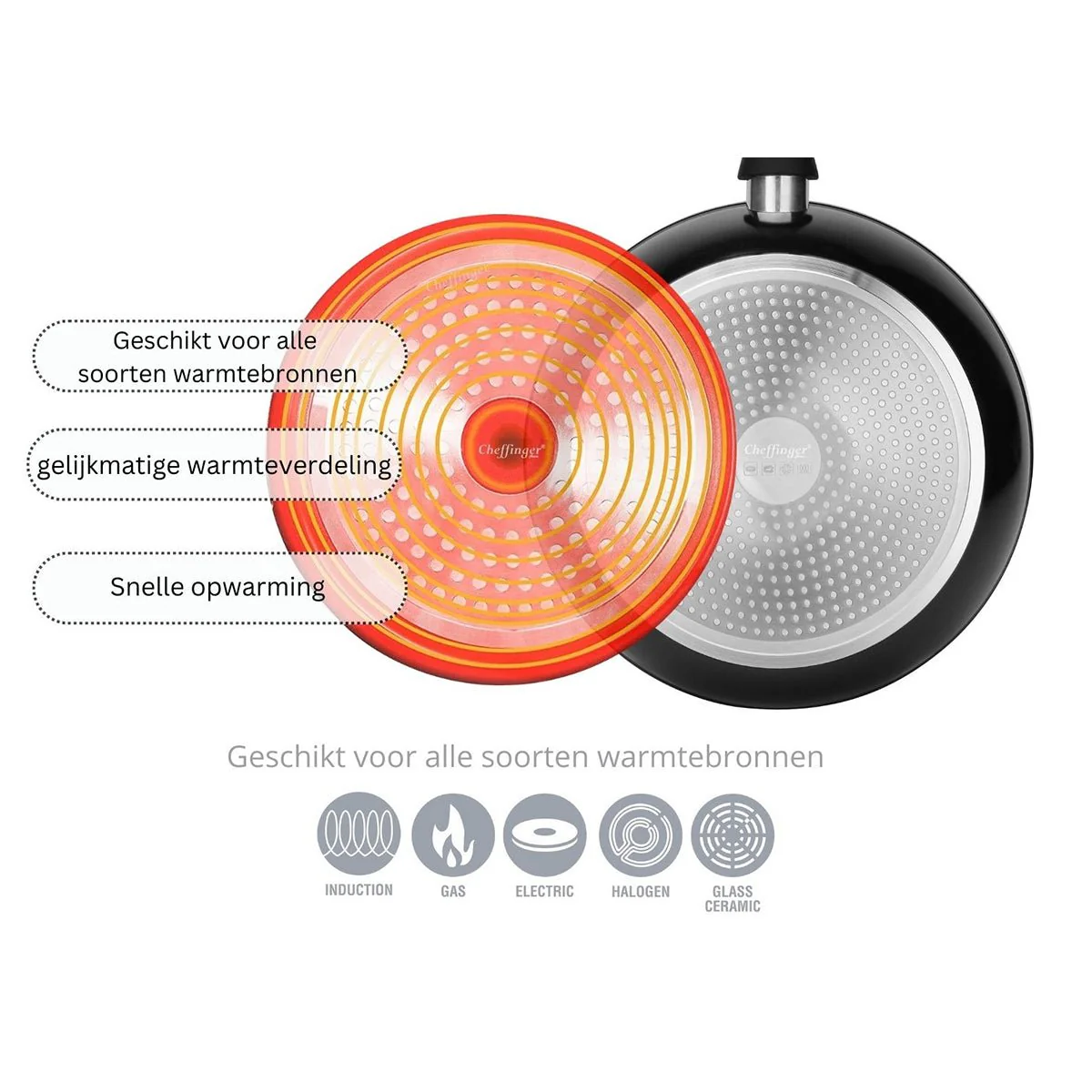 - Geschikt voor alle warmtebronnen, inclusief inductie