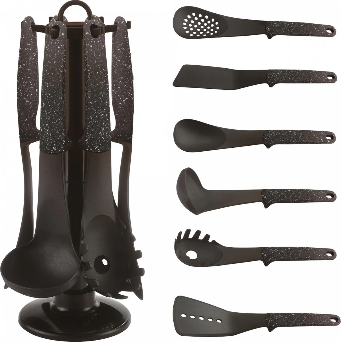 Ervaar gemak, stijl en orde in de keuken met de Cheffinger Keukengerei Set – 7-delig – Zwart – met 360° draaibare standaard. Deze moderne en praktische set biedt alles wat je nodig hebt om efficiënt te koken, zonder concessies te doen aan design. Dankzij de slimme standaard en het innovatieve balanssysteem blijft je werkblad schoon en georganiseerd – ideaal voor elke kok die houdt van comfort en hygiëne.