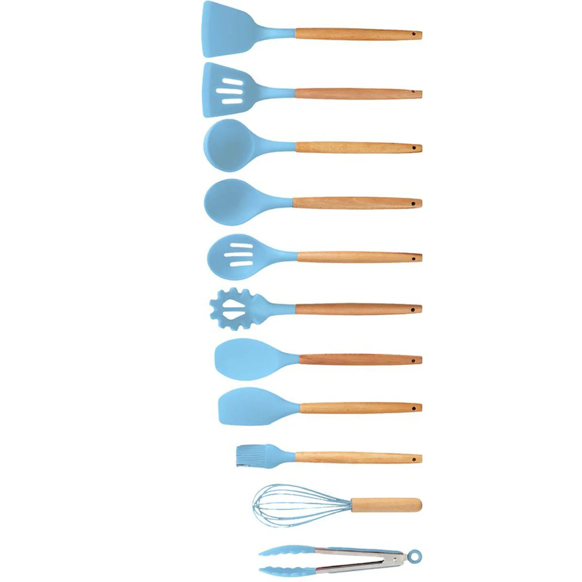Cheffinger Kookgerei Set met Houder – 12-delig – Lichtblauw – Keukengerei Set