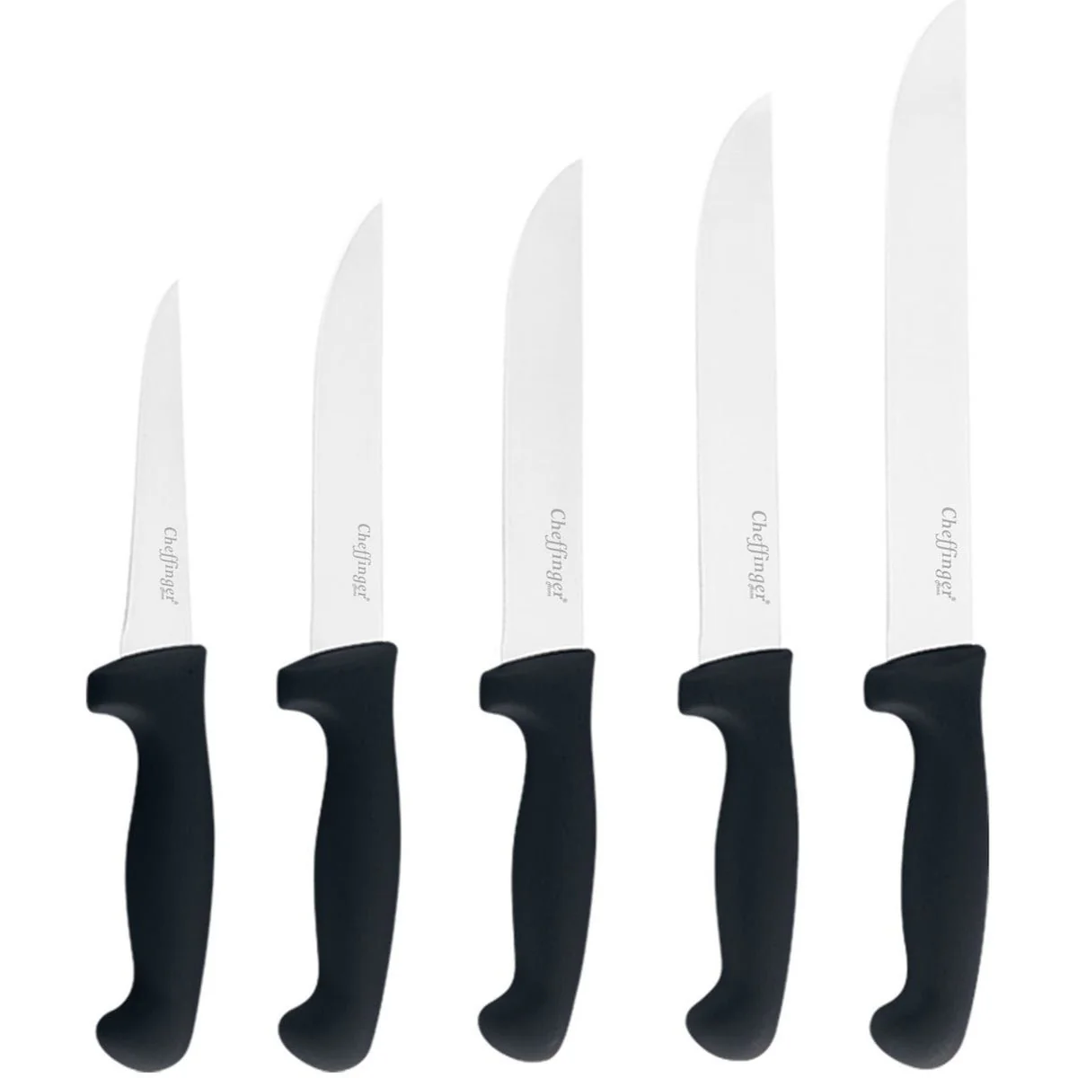 Met de Cheffinger 5-delige Messenset ervaar je precisie, kracht en elegantie bij elke snede – de perfecte aanvulling op elke BBQ of keuken.