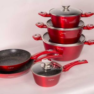 - 12-delige set met pannen in verschillende maten én ovenhandschoenen