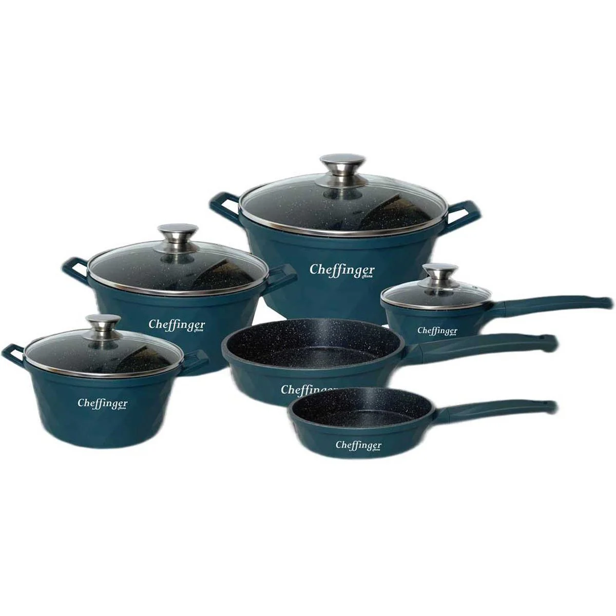 Cheffinger Pannenset – 12-delig – Groen – Inductie – Met glazen deksels