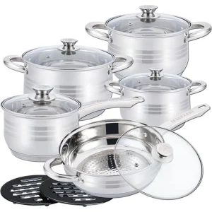 • 3x Kookpannen met deksels: 20 x 9,5 cm, 24 x 12 cm, 28 x 12,5 cm