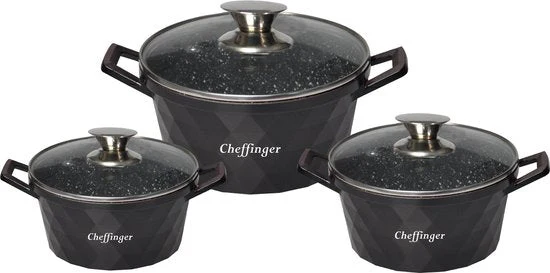Met de Cheffinger Diamond Line 6-delige pannenset haal je niet alleen functionaliteit, maar ook luxe en stijl in huis – perfect voor dagelijks gebruik én om indruk te maken.
