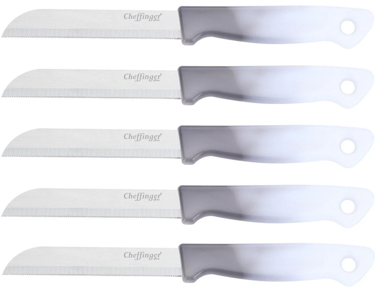 Met de Cheffinger schilmessenset grijs – 5 stuks haal je een praktische, duurzame en stijlvolle set messen in huis die onmisbaar is in iedere keuken.