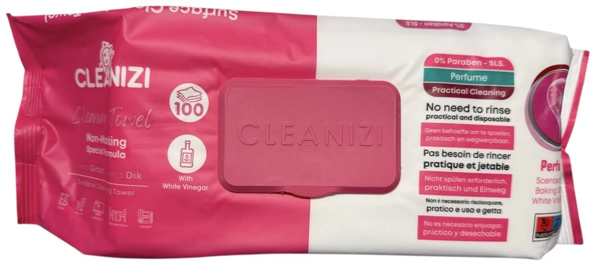 Laat elk oppervlak weer schitteren met deze krachtige Cleanizi schoonmaakdoekjes met witte azijn. De dikke, royale doekjes glijden soepel over elke ondergrond en verwijderen moeiteloos hardnekkig vuil, vet en bacteriën. Ze laten een fris, streeploos resultaat achter en geven je direct een schoon en hygiënisch gevoel in huis. Ideaal voor drukke gezinnen, snelle schoonmaakrondes of een dagelijkse frisse touch-up.