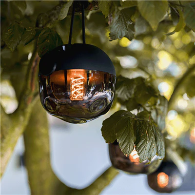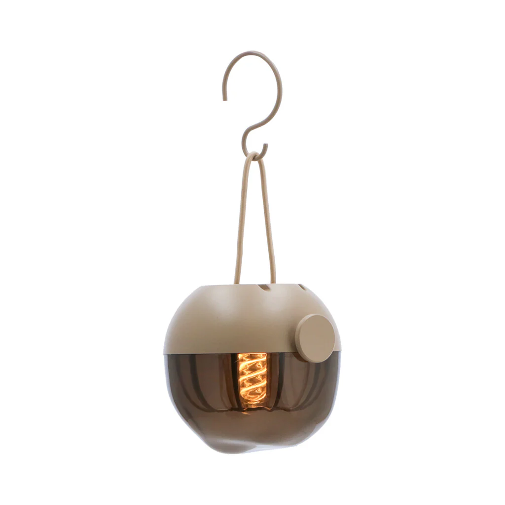 De Cosisfera heeft een organische vorm en een transparante kap met een spiraalvormige led-lichtbron die zorgt voor een warme en sfeervolle uitstraling. Je kunt het lampje neerzetten op tafel of ophangen met de meegeleverde S-vormige haak, bijvoorbeeld aan een luifel, tentframe of boomtak.