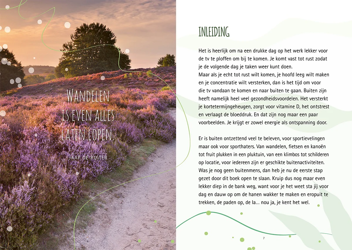 We weten het allemaal: buiten zijn doet goed. Het ontspant, geeft energie en biedt oneindig veel belevenissen die binnen niet te vinden zijn. Maar wat kun je doen als je buiten bent? Dit inspirerende boek is dé gids voor iedereen – van sportieve avonturiers tot rustige genieters – die op zoek is naar manieren om vaker de natuur in te trekken.