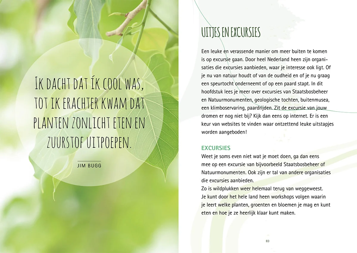 Ontdek talloze activiteiten, zoals een bezoek aan een klimbos, bosbaden, wandelroutes of zelfs kunstprojecten in de buitenlucht. Of je nu houdt van actie of juist van rust, dit boek biedt voor iedereen iets passends.