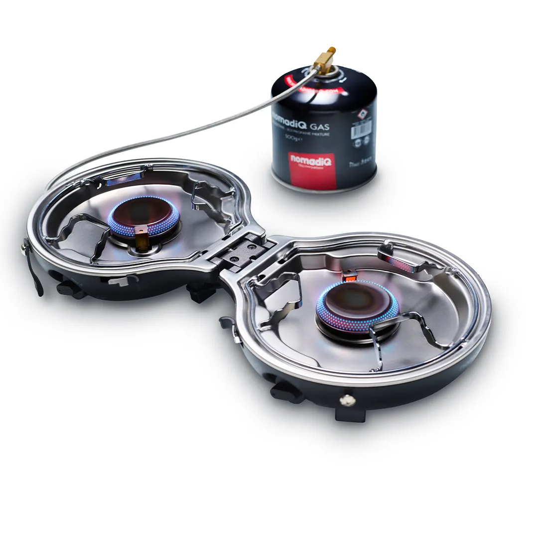 Koken in de buitenlucht was nog nooit zo eenvoudig! Dit professionele 2-pits kooktoestel van nomadiQ combineert kracht, gebruiksgemak en draagbaarheid in één slim ontwerp. Ideaal voor kampeerders, fietsers, wandelaars, vissers – kortom, voor iedereen die graag buiten leeft en toch wil genieten van een warme maaltijd.