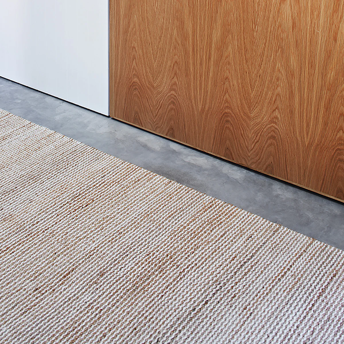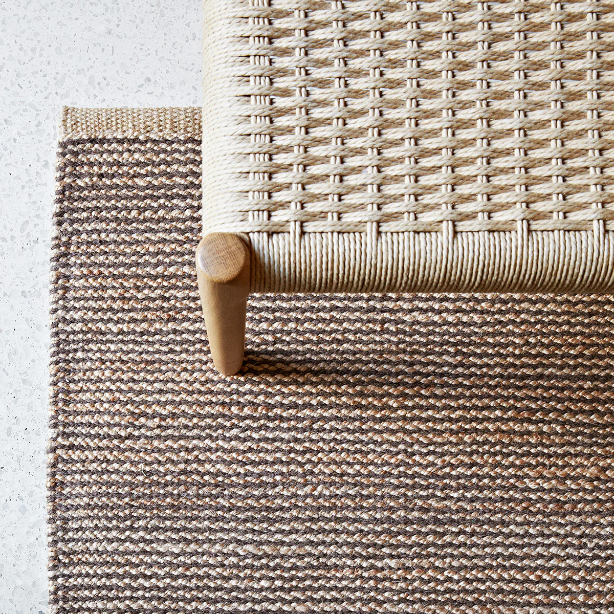 With its subtle design and a palette inspired by drifting tides and sands, this effortless rug alternates rows of jute for durability with pure wool for soft warmth.