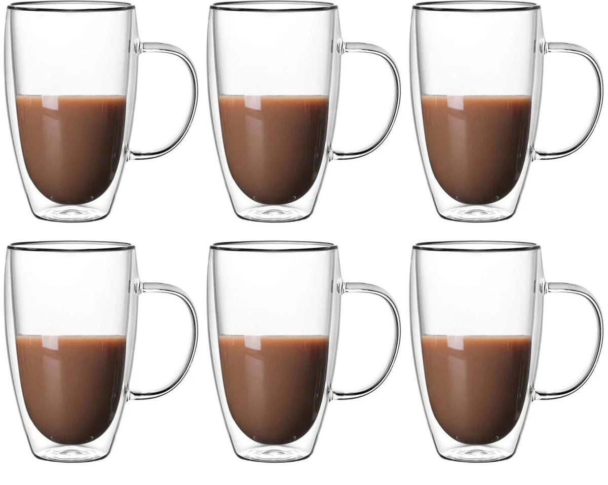 Maak van elk koffiemoment een luxe ervaring met de Dubbelwandige Glazen met Oor – nu verkrijgbaar in een royale set van 6 stuks. Met een inhoud van 450 ml per glas geniet je van extra veel koffie, thee of latte in een stijlvol jasje. Het dubbelwandige ontwerp zorgt niet alleen voor een elegante uitstraling, maar houdt je drank ook langer warm of juist heerlijk koel. Dankzij de comfortabele handgreep drink je altijd veilig en zonder hete vingers.