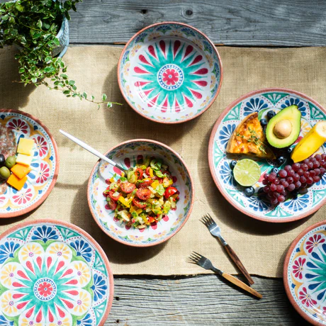 Beleef de ultieme zomerse sfeer met het Rio Medaillon servies van Abode, een ideale keuze voor buiten en in de camper! Dit elegante servies, met zijn levendige zuiderse print, brengt de warmte en charme van zonnige oorden direct naar uw tafel. Hoewel het van duurzaam melamine is gemaakt, zal de verfijnde afwerking u verrassen, met een kwaliteit die amper te onderscheiden is van echt porselein. Het Rio Medaillon servies is niet alleen een lust voor het oog maar ook praktisch voor elk avontuur buiten of in de camper. Of u nu dineert onder de open lucht of gezellig in uw camper, dit servies voegt een vleugje klasse toe aan elke maaltijd en maakt elk moment speciaal.