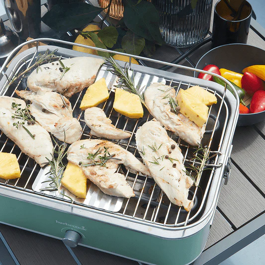 Schoonmaken na het feest is een fluitje van een cent: zowel het grillrooster met handige opstaande randen als de vetopvanglade zijn volledig vaatwasserbestendig. En met de vier stabiele pootjes blijft je tafel tijdens het grillen onbeschadigd.