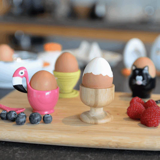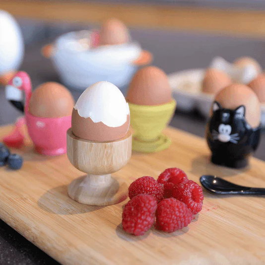 Gezellig ontbijten met deze vederlichte eierdopjes uit bamboe. Neemt geen vocht op dus vervormt niet en is uiterst hygiënisch.