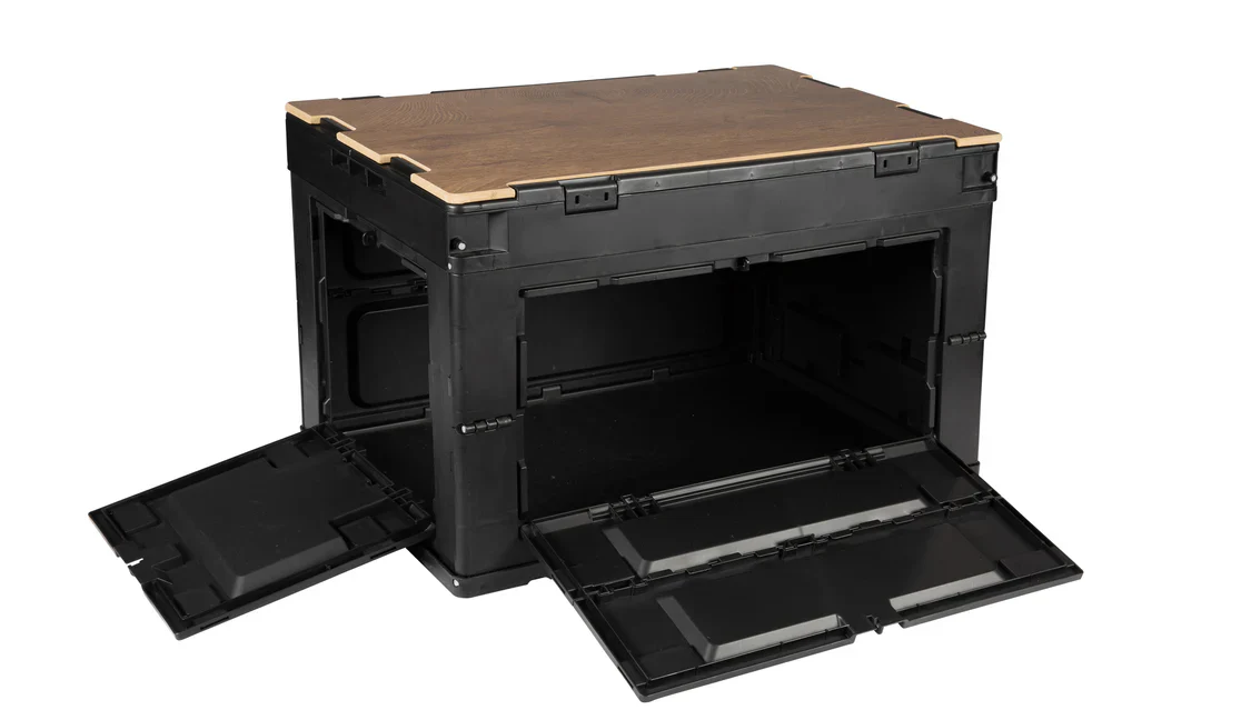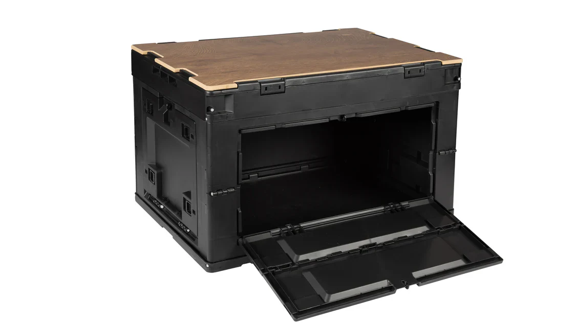 Wanneer je ‘m even niet nodig hebt, vouw je de box compact op en schuif je hem zo weg in de auto, camper of voortent.
