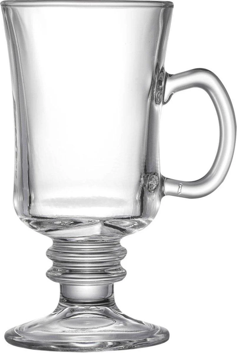 Geef je koffiemoment een elegante upgrade met de Glozini Irish Coffee Glazen met Oor – 250 ml – Set van 4. Deze stijlvolle glazen zijn speciaal ontworpen voor het serveren van warme dranken zoals Irish coffee, latte macchiato, cappuccino en thee. Dankzij het comfortabele, stevige oor kun je de glazen veilig vasthouden, zelfs wanneer de inhoud gloeiend heet is. Het heldere glas laat de lagen en kleuren van je drankje prachtig tot hun recht komen – perfect voor thuisgebruik of het serveren van gasten.