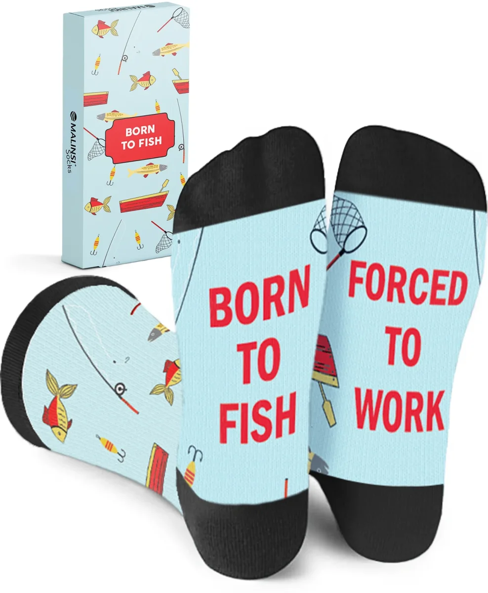Malinsi® “Born to Fish, Forced to Work” Sokken – Voor de Passievolle Visser!