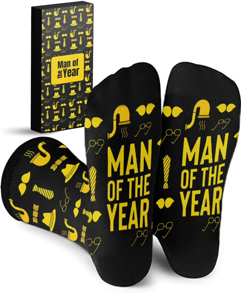 Grappig en Uniek Design: Het stijlvolle ontwerp en de tekst “Man Of The Year” maken deze sokken een geweldige toevoeging aan elke sokkenlade.
