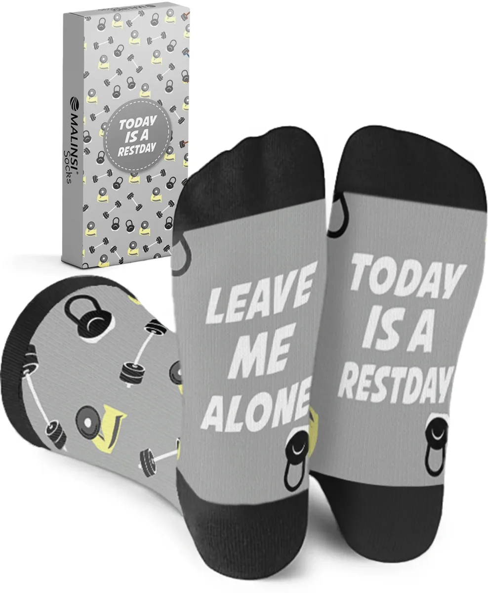 Malinsi® “Leave Me Alone, Today is a Rest Day” Sokken – Het Perfecte Cadeau voor Fitnessliefhebbers