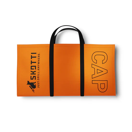 De afzonderlijke onderdelen van de SKOTTI Cap worden geleverd in een eigen tarpbag. Indien gewenst, kunnen ze later samen met uw SKOTTI Grill worden vervoerd, waarbij alle onderdelen in de grillbag bij elkaar passe