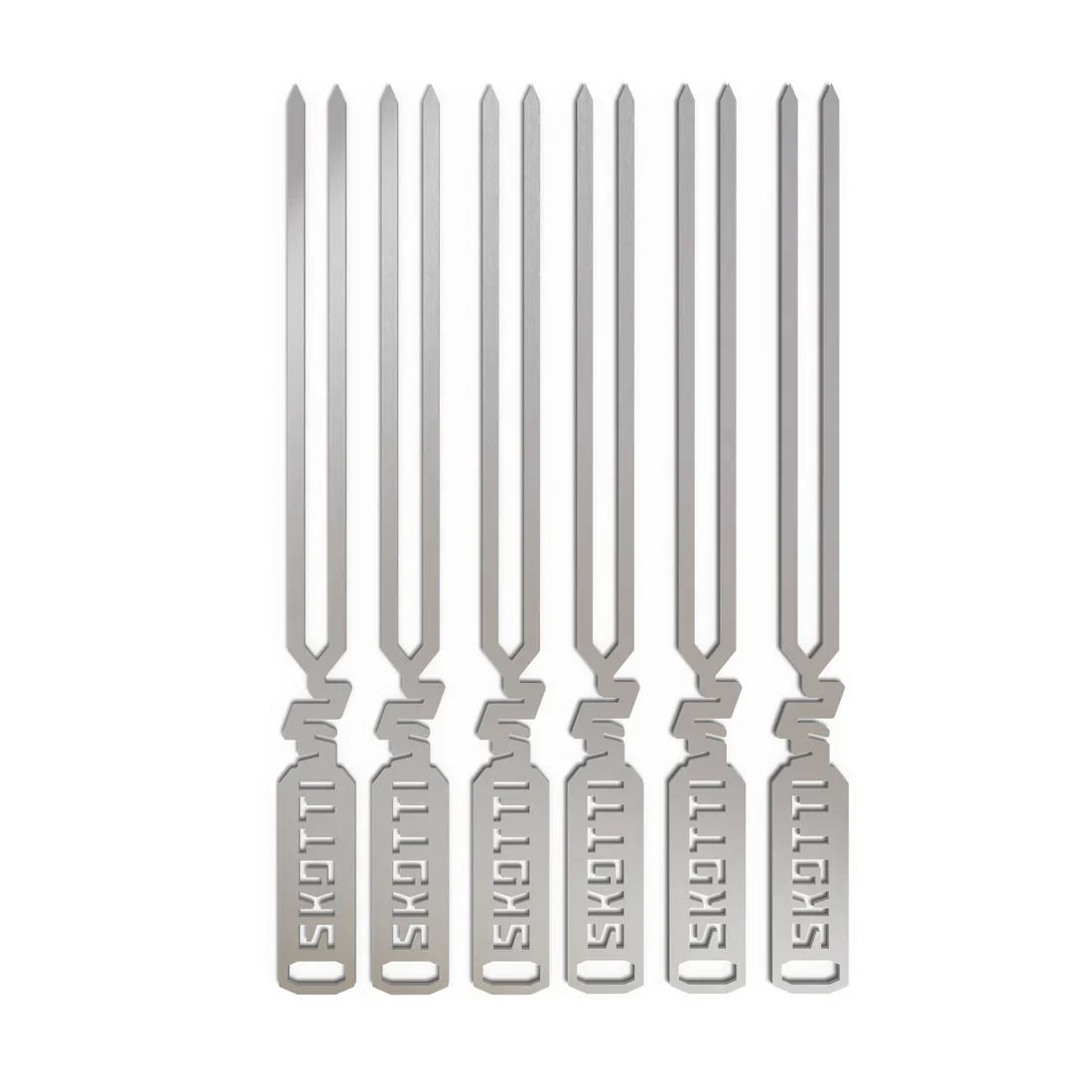 De staalharde feiten: U ontvangt 6 stuks, 28 cm lang en 3 mm dik. Dankzij de unieke SKOTTI dubbele punt blijft alles stevig vastzitten. Hoe u het ook draait en keert: de SKOTTI PIKES kunnen zowel horizontaal als verticaal in de SKOTTI worden gestoken.