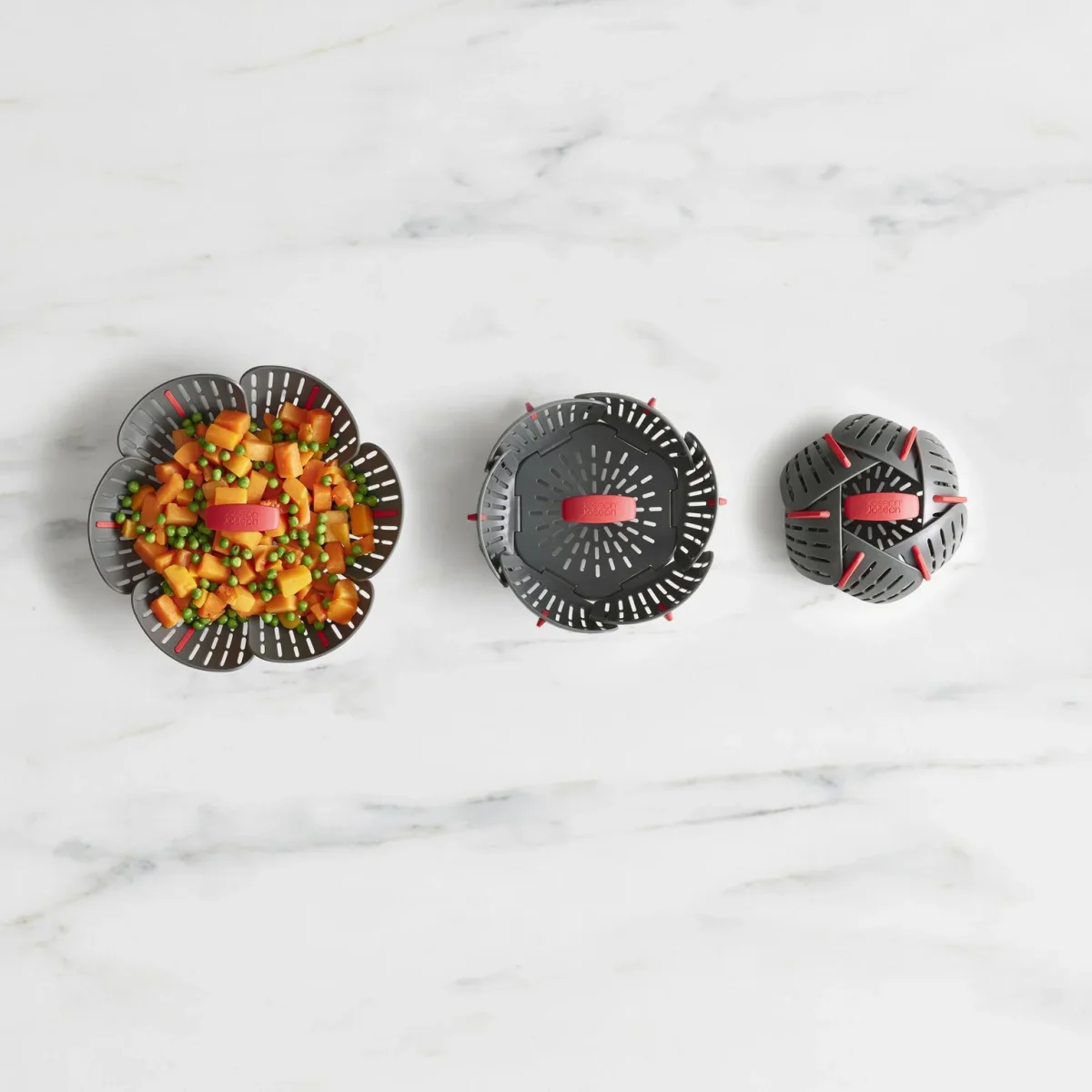 Maak kennis met de ultieme keukenhulp: de opvouwbare stomer van Joseph Joseph Duo, jouw geheim voor snel, gezond en smaakvol koken, ook onderweg en op vakantie. Deze innovatieve stoominzet past zich aan vrijwel elke pan aan en is met zijn slimme ontwerp perfect voor elke keuken. Voorzien van siliconen voeten om je pannen te beschermen, veilig in gebruik dankzij de BPA-vrije materialen en een easy-lift vorkhaak. Na gebruik vouw je hem eenvoudig op voor compacte opslag. Gezond koken was nog nooit zo eenvoudig en veilig!
