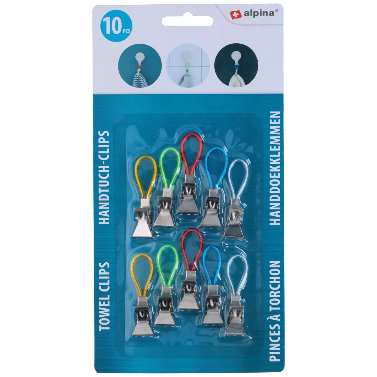Met deze multifunctionele handdoekklemmen van Alpina hang je eenvoudig handdoeken, wasgoed of andere items op tijdens het kamperen. Ideaal voor gebruik in campers, caravans en tenten! De set bevat 10 klemmen in 5 vrolijke kleuren, waardoor je alles netjes en georganiseerd ophangt. Een must-have voor elke kampeeruitrusting!
